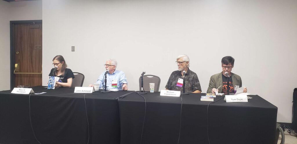 - John Ashmead – panel moderator, physicist, database engineer, SF writer, noted for work on quantum mechanics, time travel, and futurist topics.
